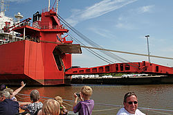 Von unserem Anleger aus geht die einstündige Fahrt durch den Neuen Hafen und die Kaiserhäfen I, Kaiserhafen II und Kaiserhafen III, wo Sie im Vorbeifahren die Kaiserschleuse betrachten können. Weiter geht es durch den Verbindungshafen zu den riesigen Autotransporter.