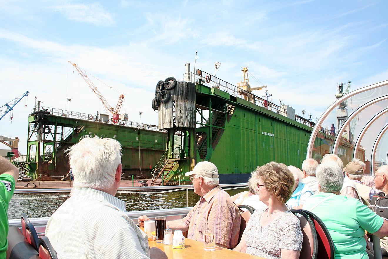 Während der Fahrt kommt man aus dem Staunen und Fotografieren kaum heraus: Die Fahrt führt Sie u. A. vorbei an riesigen Autotransportern, Fruchtschiffen, Schleppern, Schwimmkränen und Werften. Von der Hafenseite aus sehen Sie in geringer Entfernung den Dschungel der Entladekräne sowie die riesigen Containerschiffe an der fünf Kilometer langen Stromkaje der Weser – dem größten zusammenhängenden Container-Terminal der Welt.